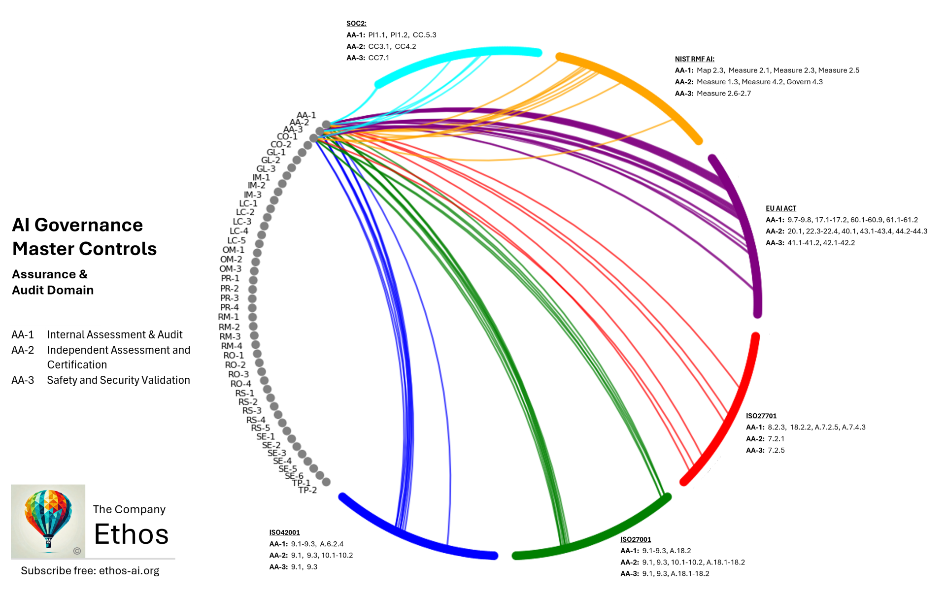 The final control domains for assurance, third-party suppliers and transparency, concluding of our mega-map of AI Governance drawing from ISO420001/27001/27701, SOC2, NIST RMF AI and the EU AI Act.