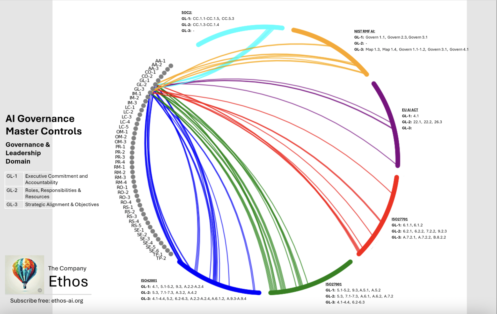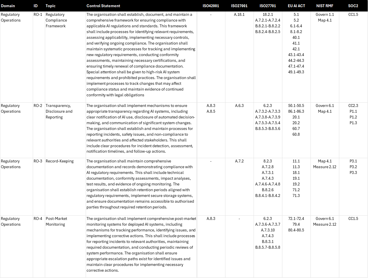 Diving into the first 3 master control domains for our mega-map of AI governance compliance drawing from ISO420001/27001/27701, SOC2, NIST RMF AI and the EU AI Act