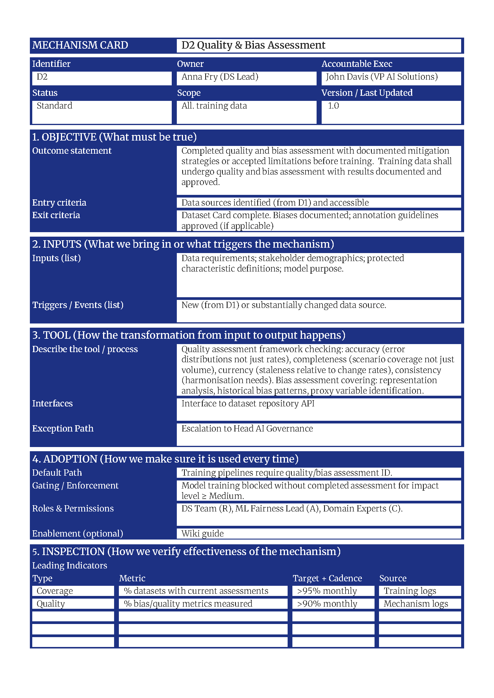 An example of a Mechanism Card that provides a rapid, formal definition of a governance mechanism like bias assessment.