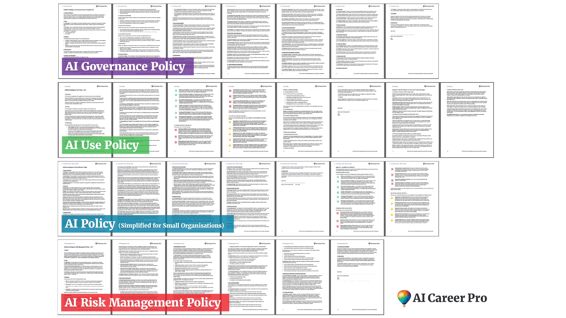 You can learn how to write effective AI Governance policies with detailed walkthroughs of a Governance Charter, Governance Policy, Risk Management Policy, Use Policy, and even a streamlined AI Policy for small organisations. Download the templates and use them in your organisation. It's all within Course 4 of the AI Governance Practitioner Program